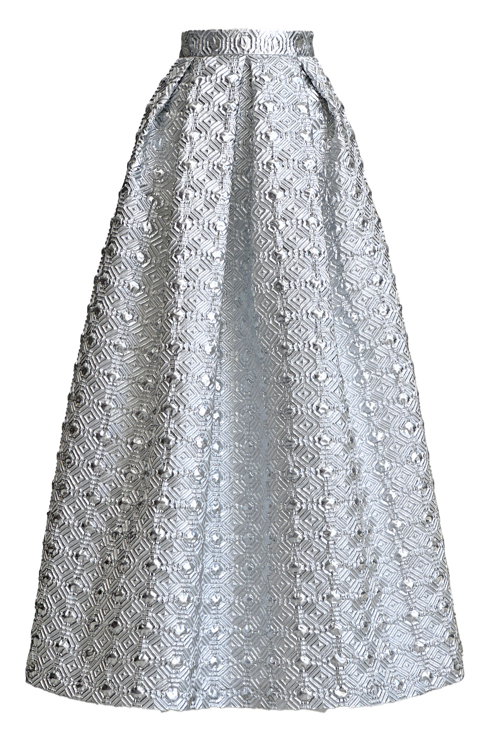 Gonna midi ampia a vita alta confezionata in tessuto Lurex color argento