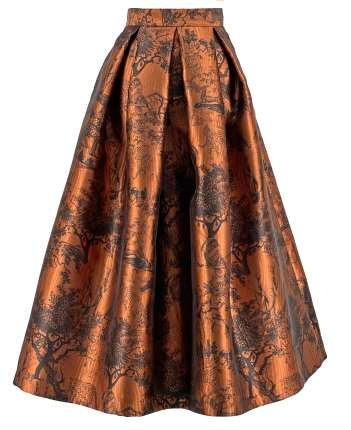 Gonna midi ampia a vita alta confezionata in tessuto mikado stampato