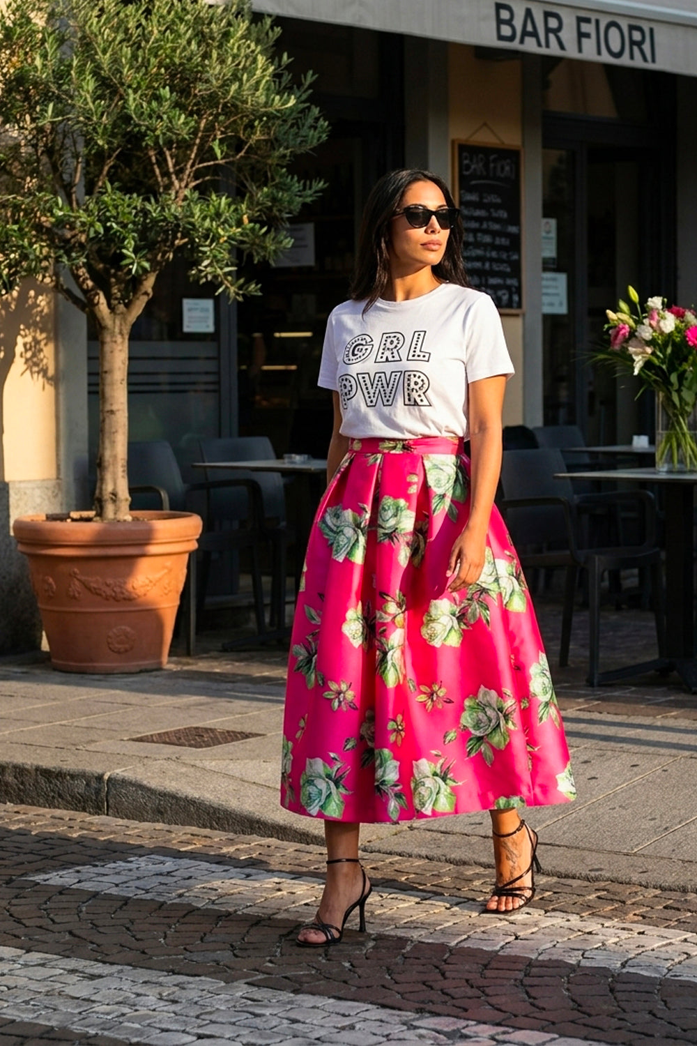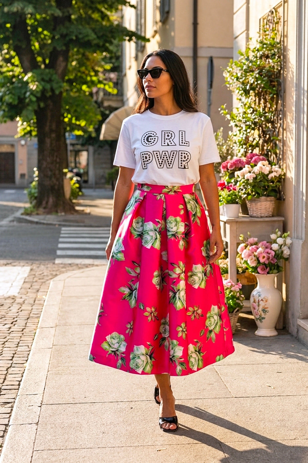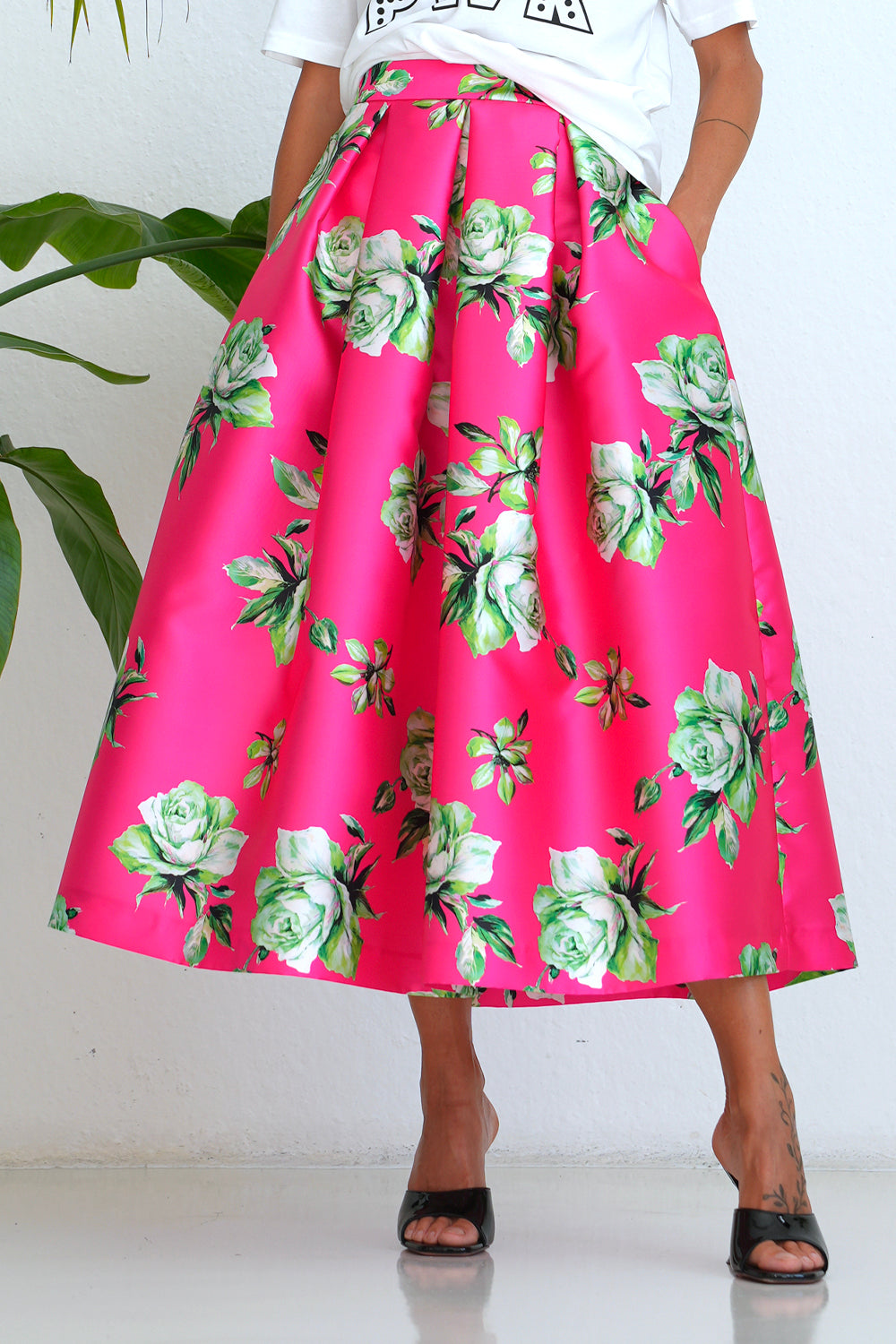 Falda Mikado Fucsia - Rosas
