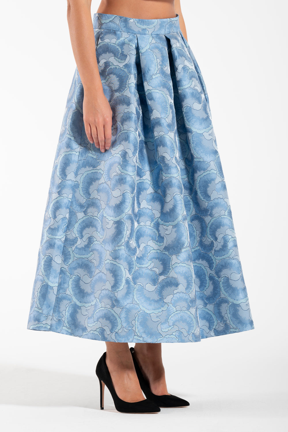 Gonna midi ampia a vita alta confezionata in tessuto jacquard
