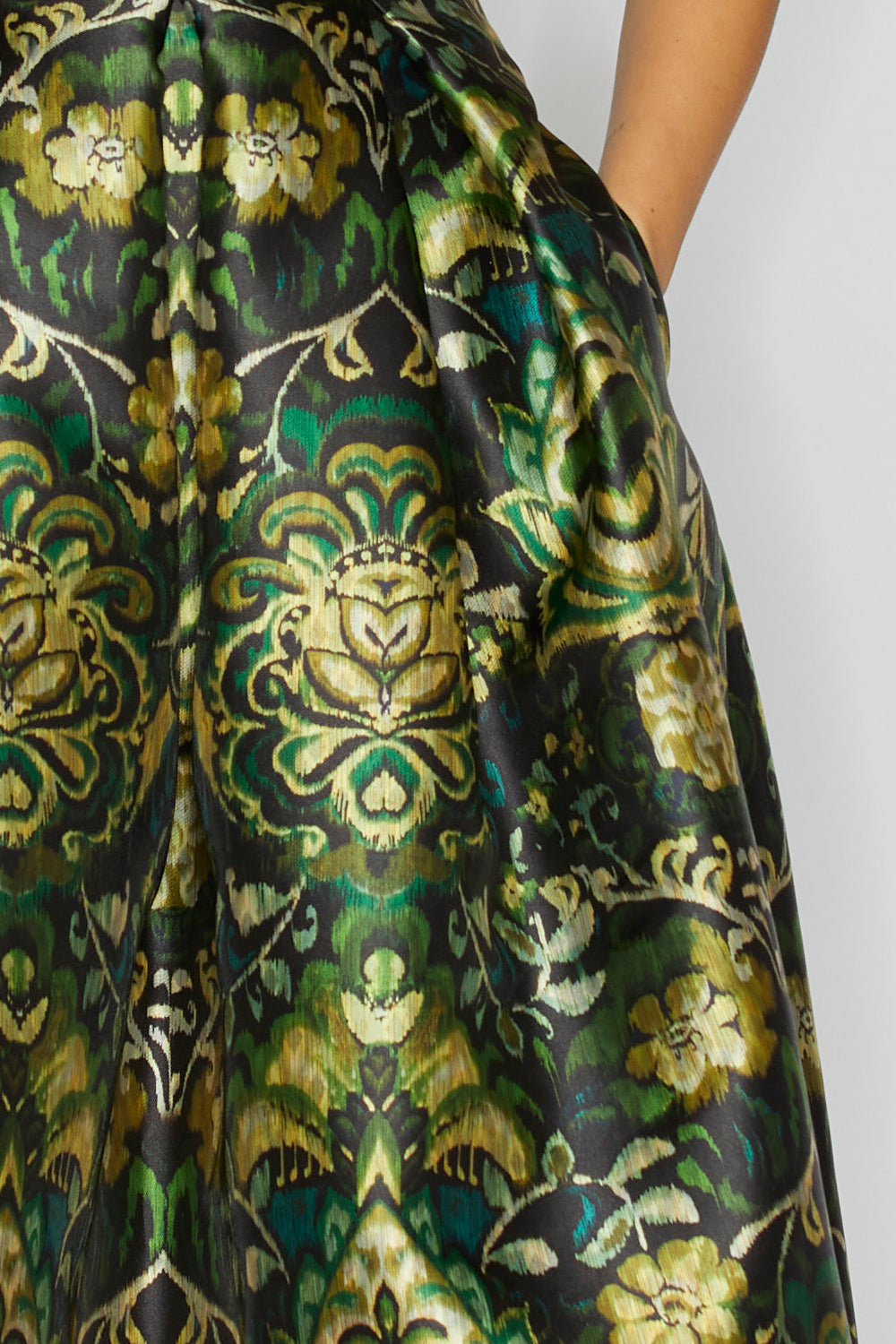 Gonna midi ampia a vita alta confezionata in tessuto mikado stampato